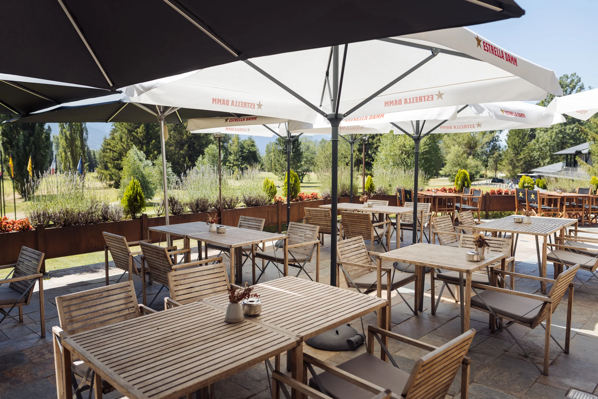 El ambiente del Restaurante Xalet del Golf es un reflejo del paisaje que lo envuelve: sofisticado, elegante y acogedor, con un toque de sencillez minimalista. El restaurante, que tiene varias salas privadas y una terraza o carpa cerrada en invierno y medio abierta en verano, y con acceso directo al campo de golf.