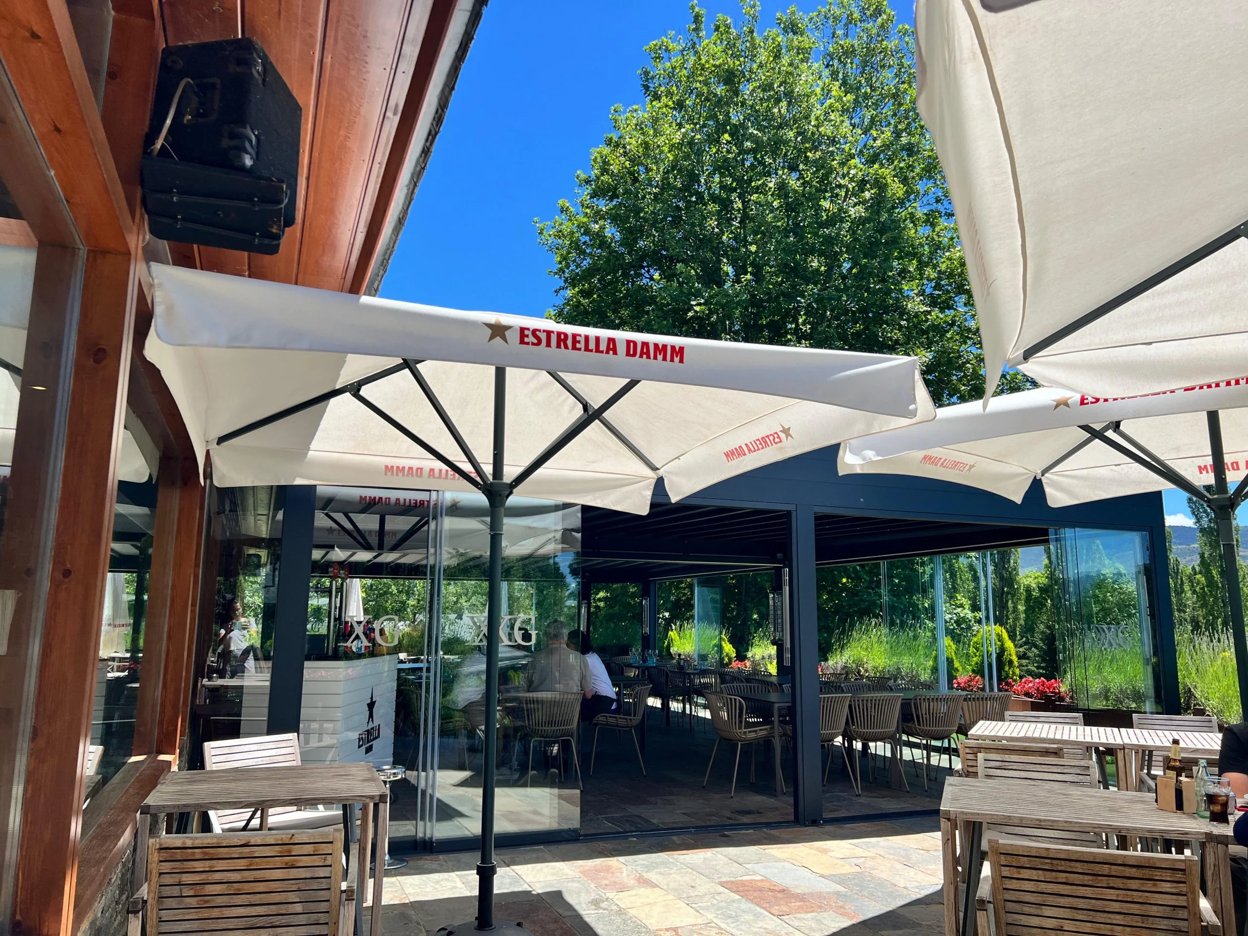 El ambiente del Restaurante Xalet del Golf es un reflejo del paisaje que lo envuelve: sofisticado, elegante y acogedor, con un toque de sencillez minimalista. El restaurante, que tiene varias salas privadas y una terraza o carpa cerrada en invierno y medio abierta en verano, y con acceso directo al campo de golf.